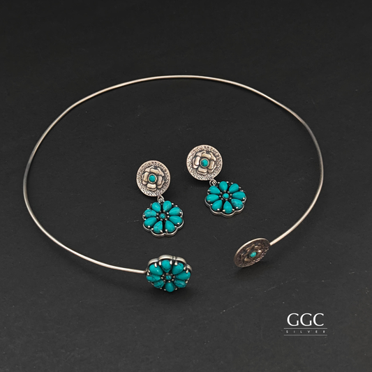 Turquoise Silver Hasli Set